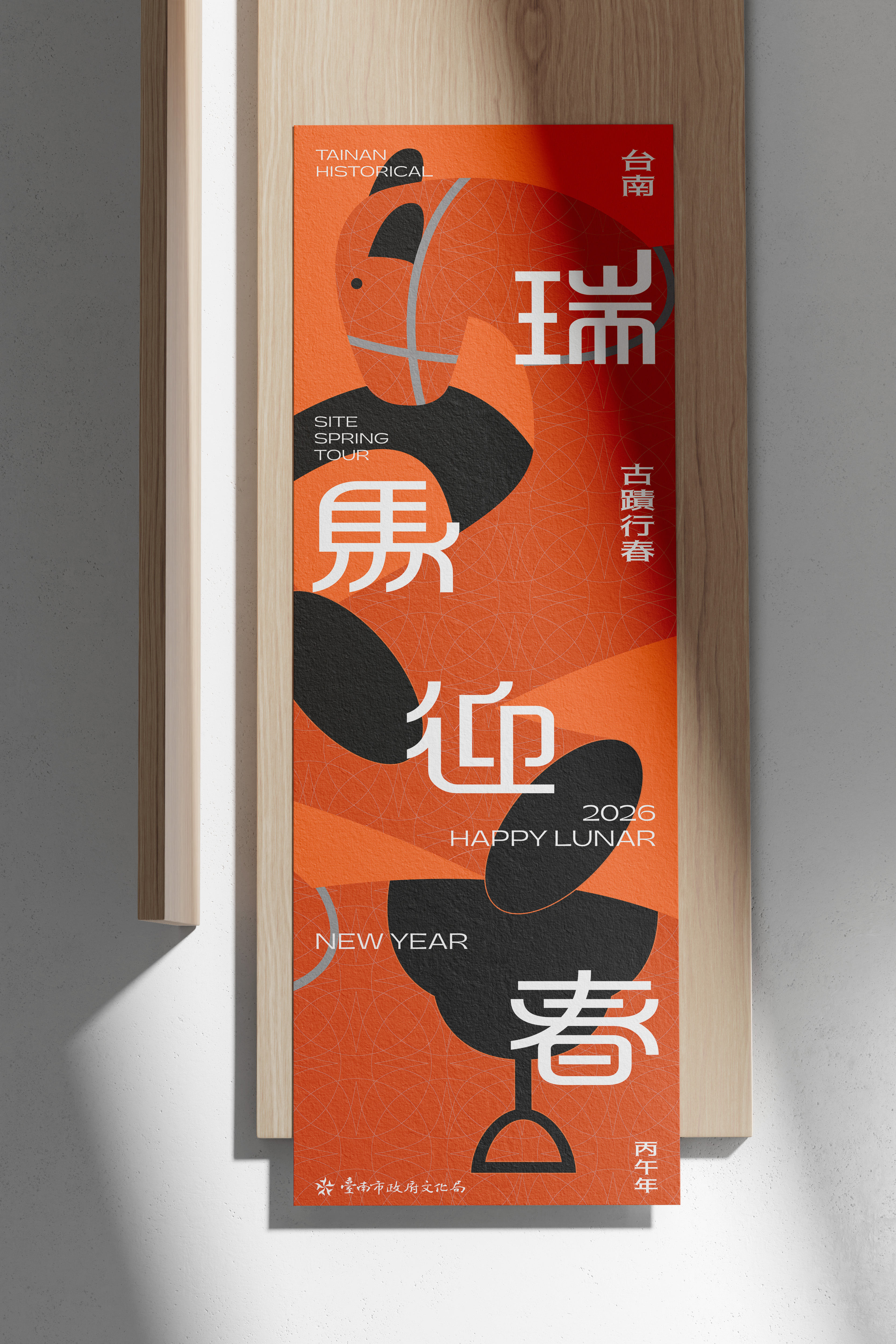 以赤嵌樓的石馬外型作為輪廓,圖形纏繞馬身搭配古樸感的橘褐色,傳遞帶有春節喜慶與童謠故事感的熟悉記憶,祝福大家福氣滿滿。
